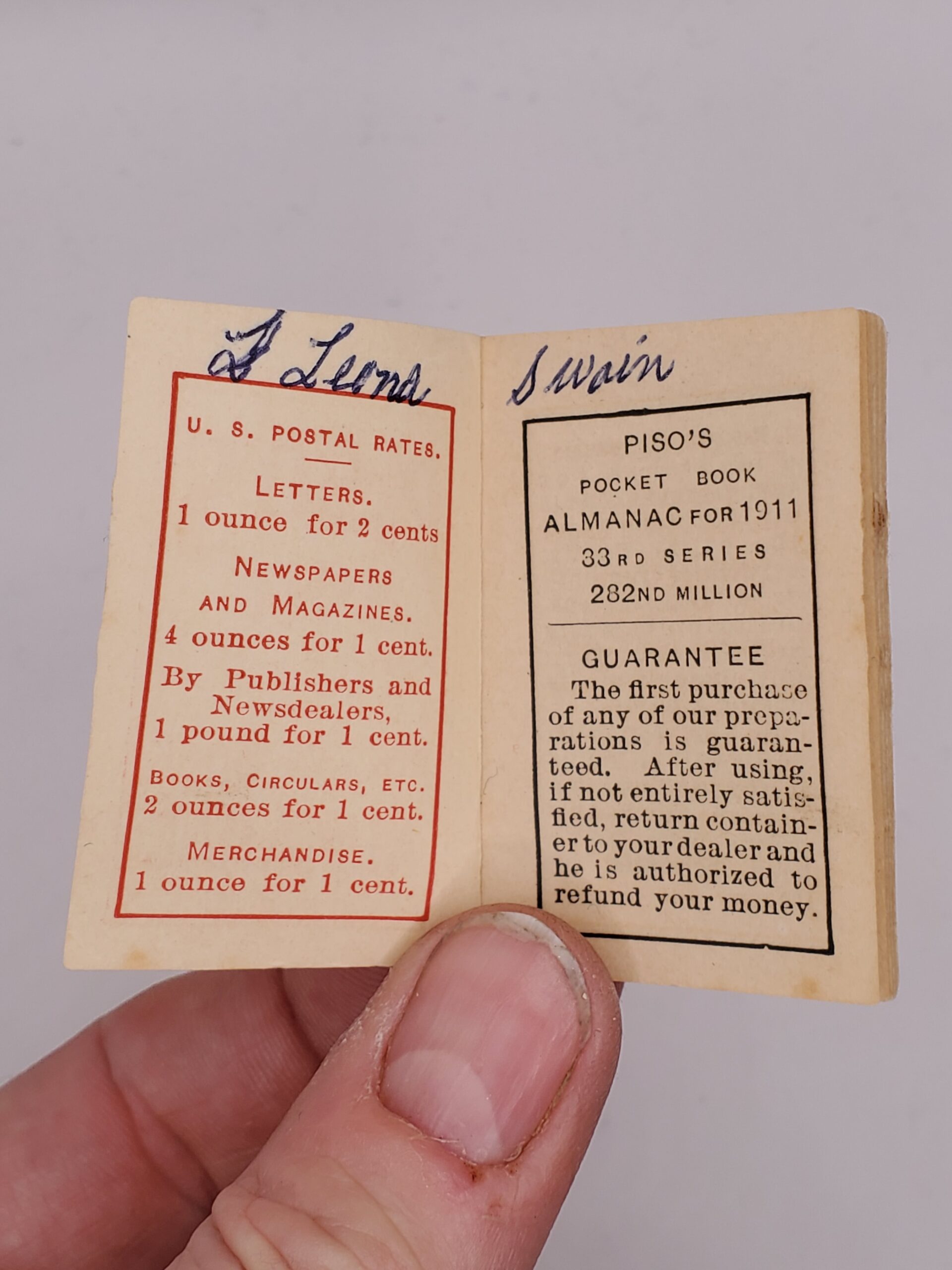 Piso’s 1911 Pocket Book Almanac